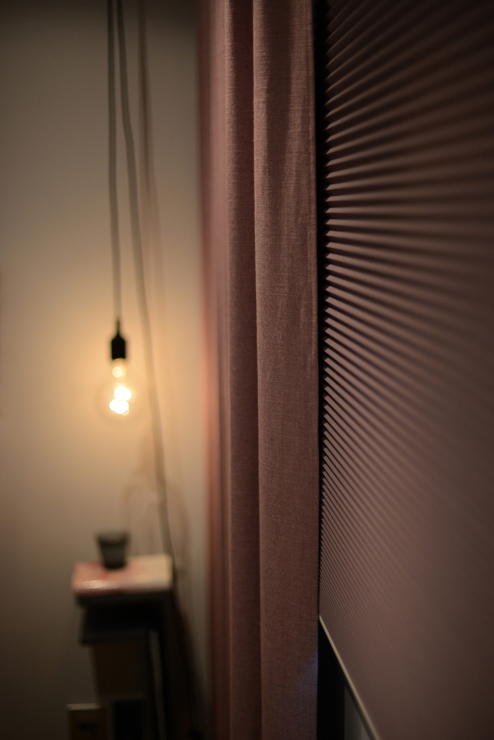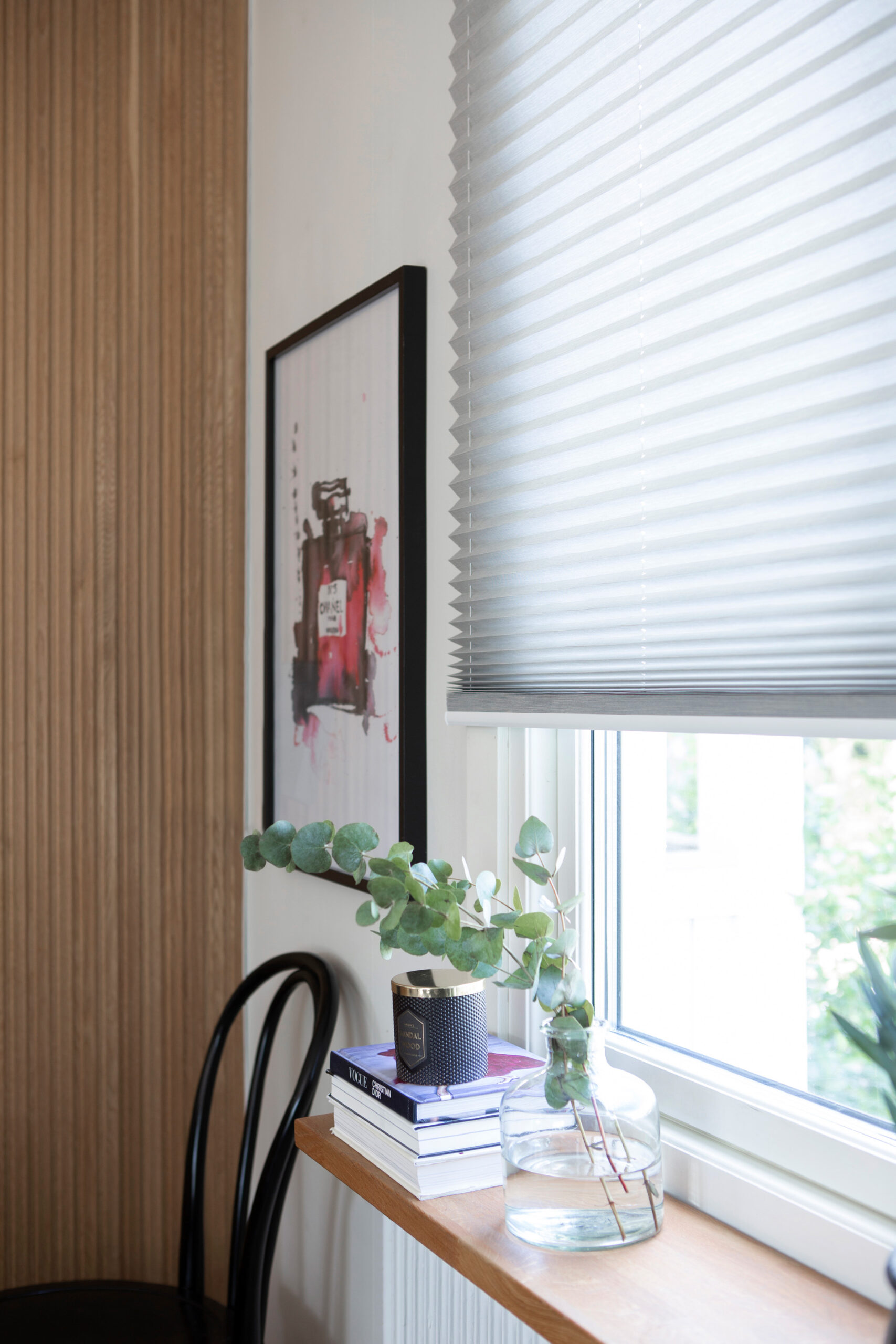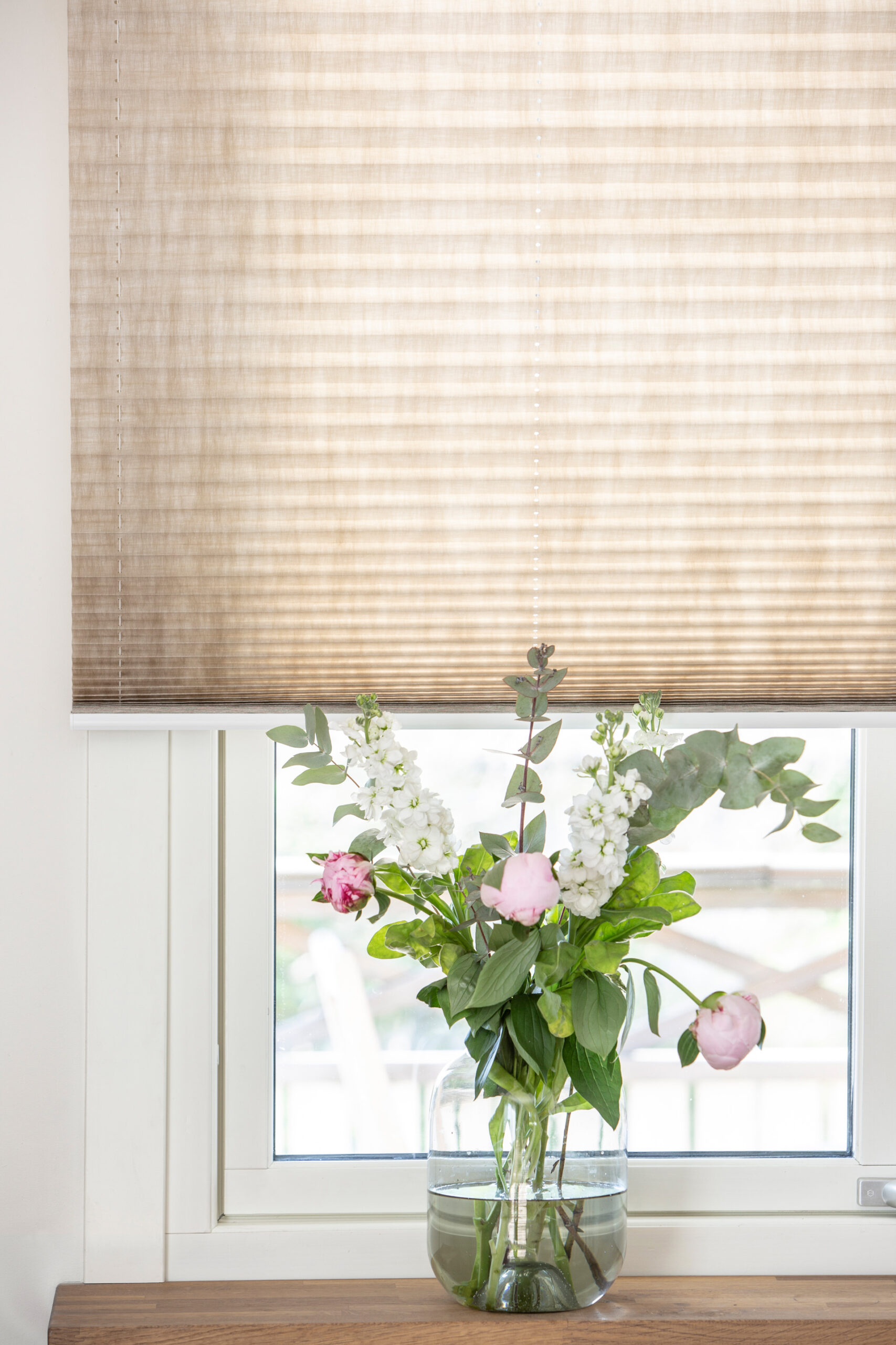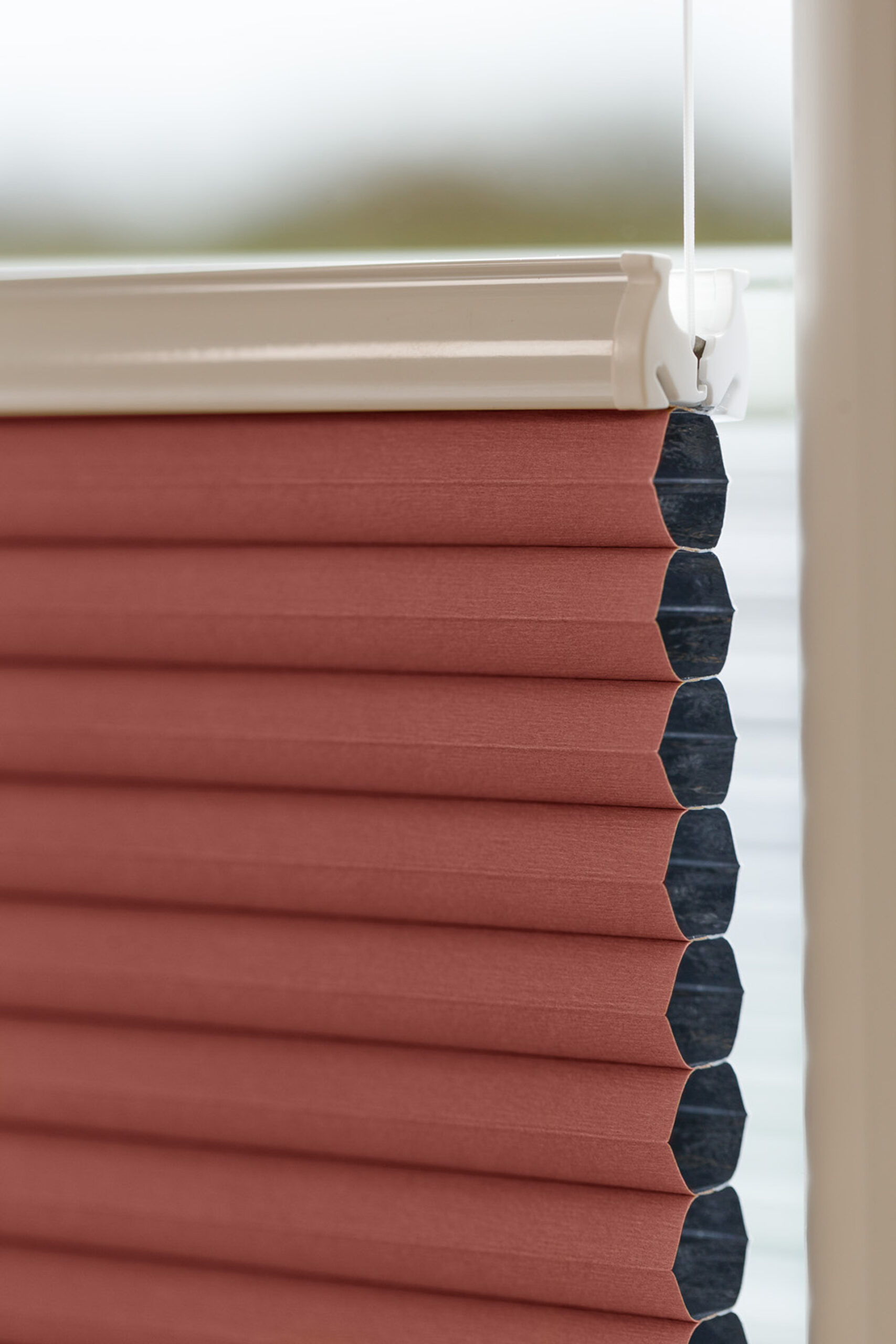 Plisségardiner med handtag eller motor blir alltid barnsäkra, då det aldrig förekommer några lösa linor.