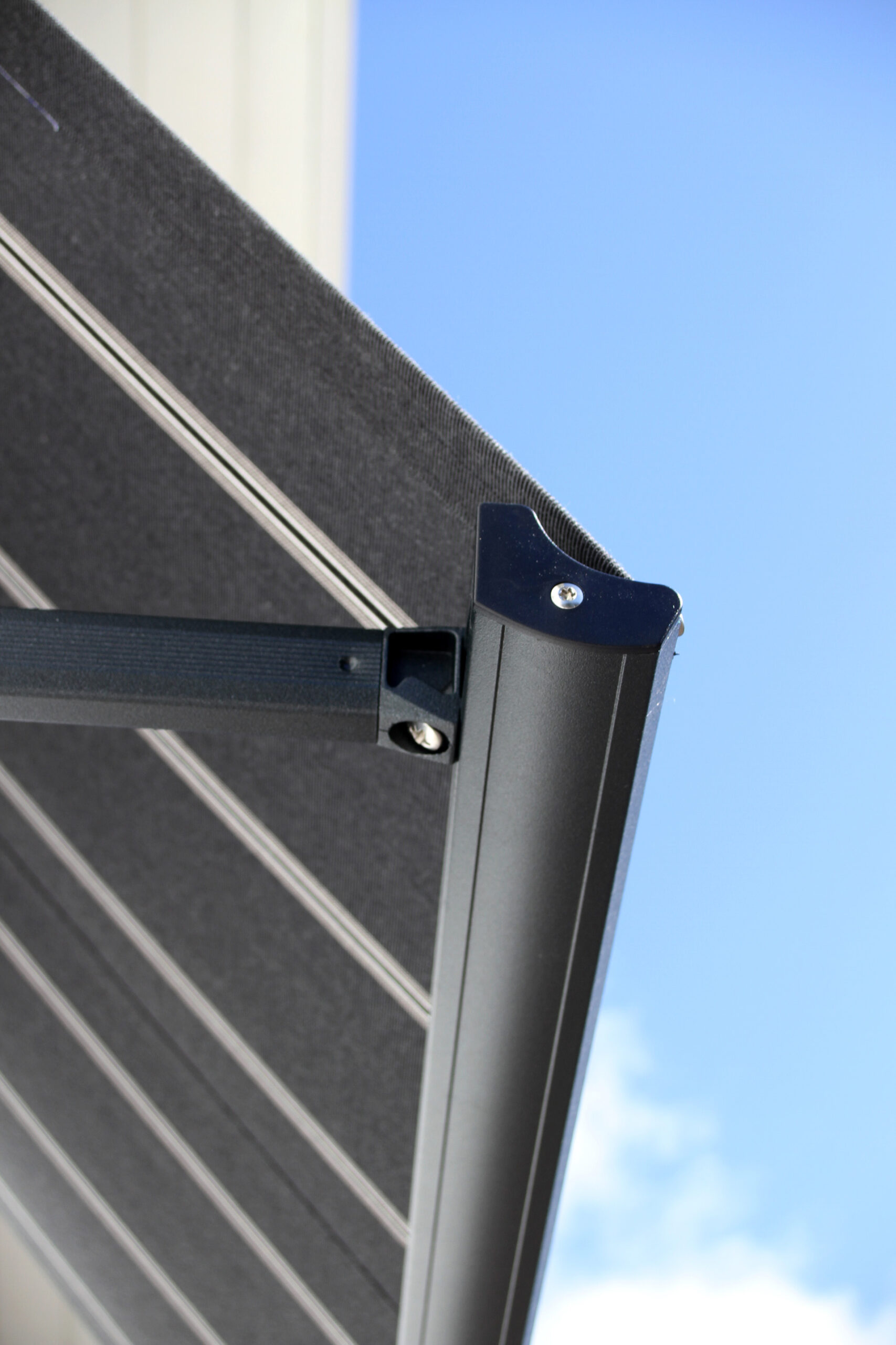 Tack vare kassetten så skyddas väven mot väder och vind när markisen är i infällt läge. Armarna har justerbar fjäderspänning, vilket gör att duken alltid är sträckt.